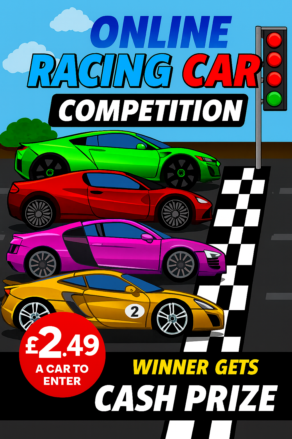 For just Β£2.49 per car, you can jump in the action and race for a CASH PRIZE of up to Β£400! π·π₯