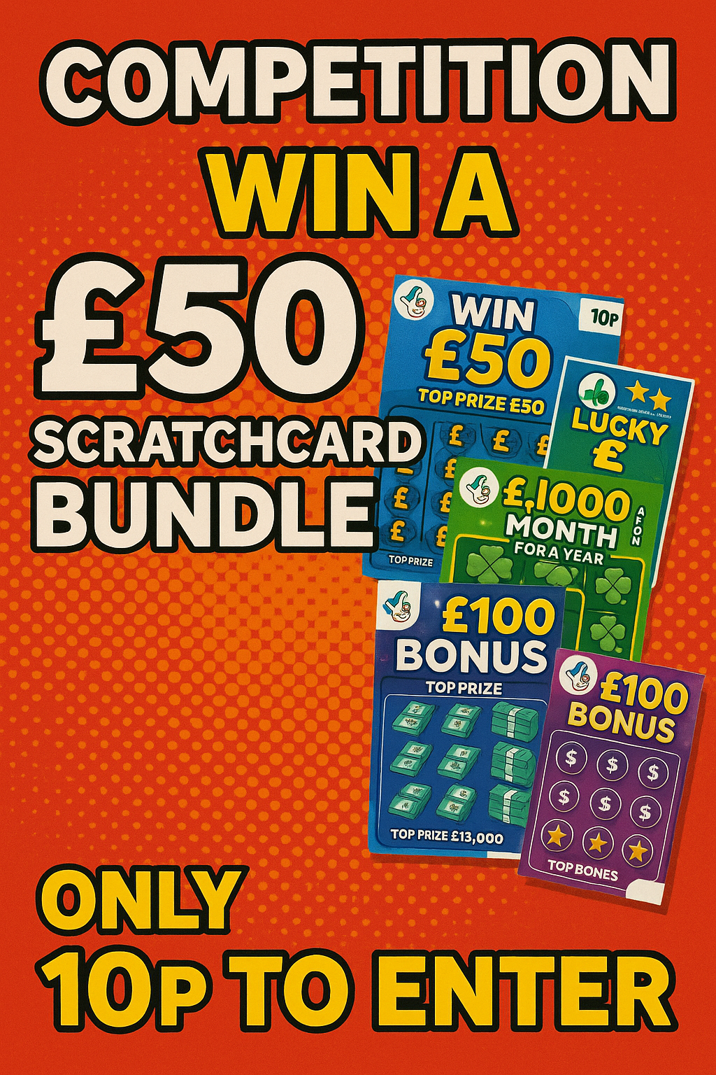 πŸ€©πŸ’°Β£50 Scratch Card Bundle 10πŸ’°πŸ€© (Copy)